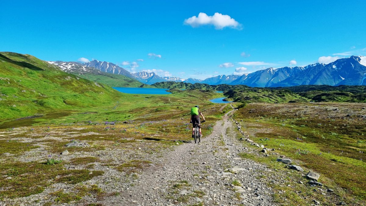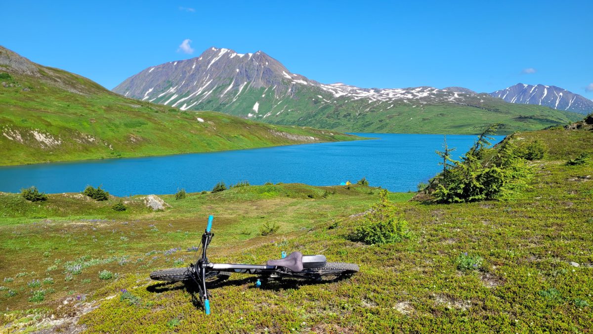 Auf dem Parkplatz trafen wir auf zwei andere Biker, die sich gerade auf den Weg zum See machten. Einer von beiden fuhr auch ein Canyon Mountainbike und so kamen wir ins Gespräch und stellten fest – auch dieses Canyon kam aus Koblenz, mitsamt seinem Besitzer. Tobi ist mit seiner Familie vor 12 Jahren nach Anchorage ausgewandert und hatte viele Tipps zum Mountainbiken für uns. Man ist einfach nirgendwo sicher vor uns Deutschen. 😉