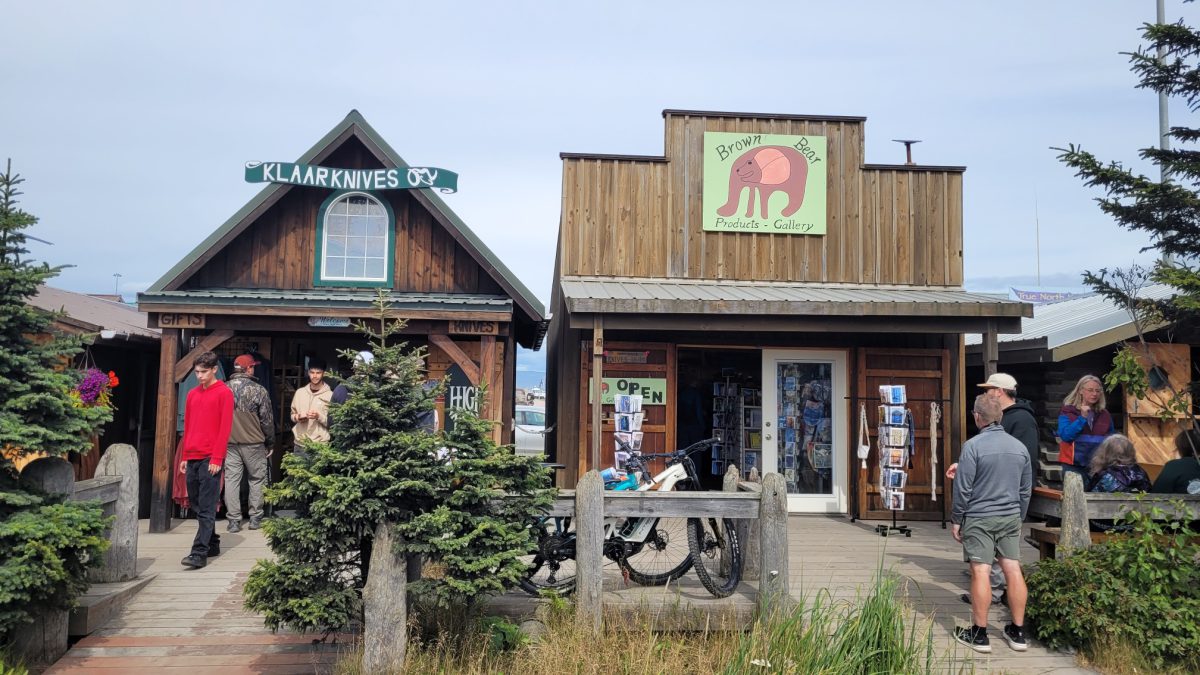 Trotz der horrenden Preise wagten wir uns hinaus ins Touri-Zentrum, auf den Homer Spit. Der Spit ist eine 6,4 km lange, extrem schmale Landzunge, wo nicht nur die Fischereihäfen sind, sondern sich auch eine Touri-Bude an die andere reiht. Von Restaurants über Souvenirläden und Tourenanbietern – hier gibt’s alles, was sich gutbetuchte Touristen leisten wollen.