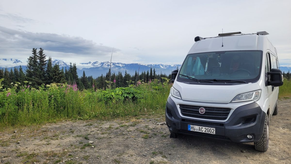 Es regnete die ganze Fahrt über durchgängig, was die Fahrerei nicht gerade angenehm machte. Wir hatten keine Lust direkt bis Anchorage durchzufahren und so steuerten wir zeitig am Nachmittag einen Stellplatz an, der sich als echter Glückgriff erwies.
