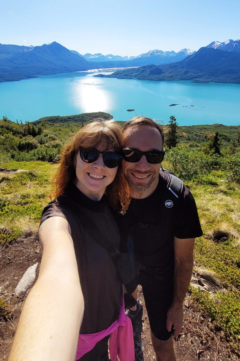 Am nahegelegenen Skilak Lake schnürten wir die Wanderschuhe und machten uns auf zum Aussichtspunkt auf den See. Es ging durch den Wald, der dank des Regens nicht nur ganz schön matschig war, sondern auch voller hungriger Mücken. Da kam die Moskito-Burka wieder zum Einsatz.