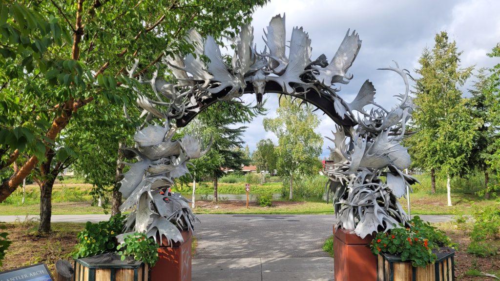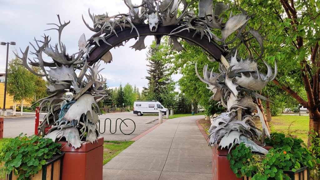 So kam ich in den Genuss, mit Moby direkt am Antler-Arch wohnen zu können, einem kleinen Wahrzeichen von Fairbanks, welches aus dutzenden Elchgeweihen besteht.