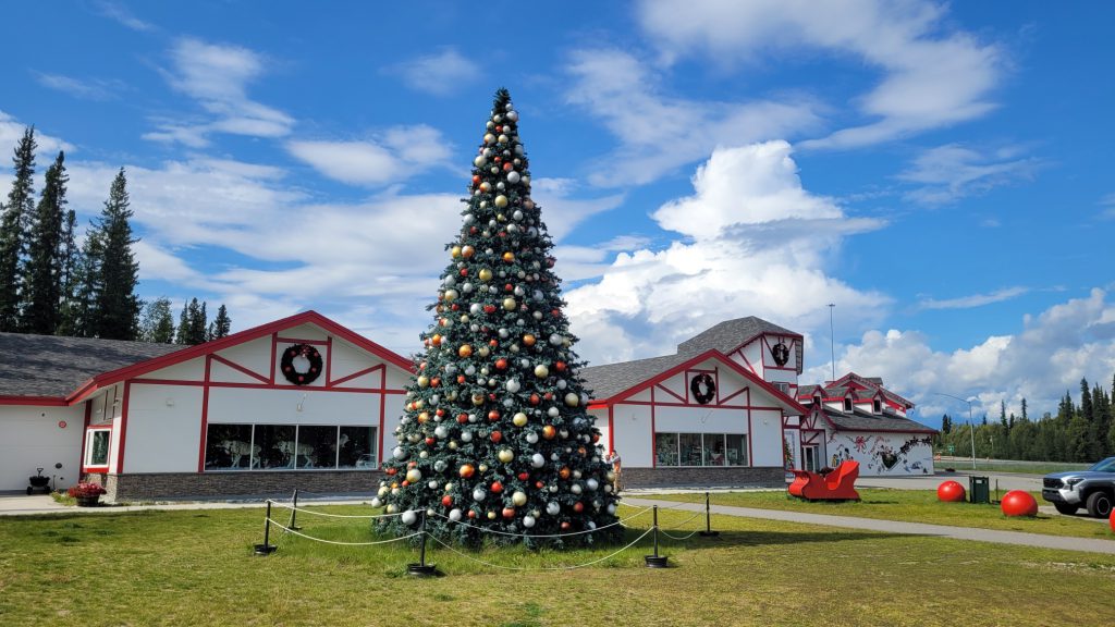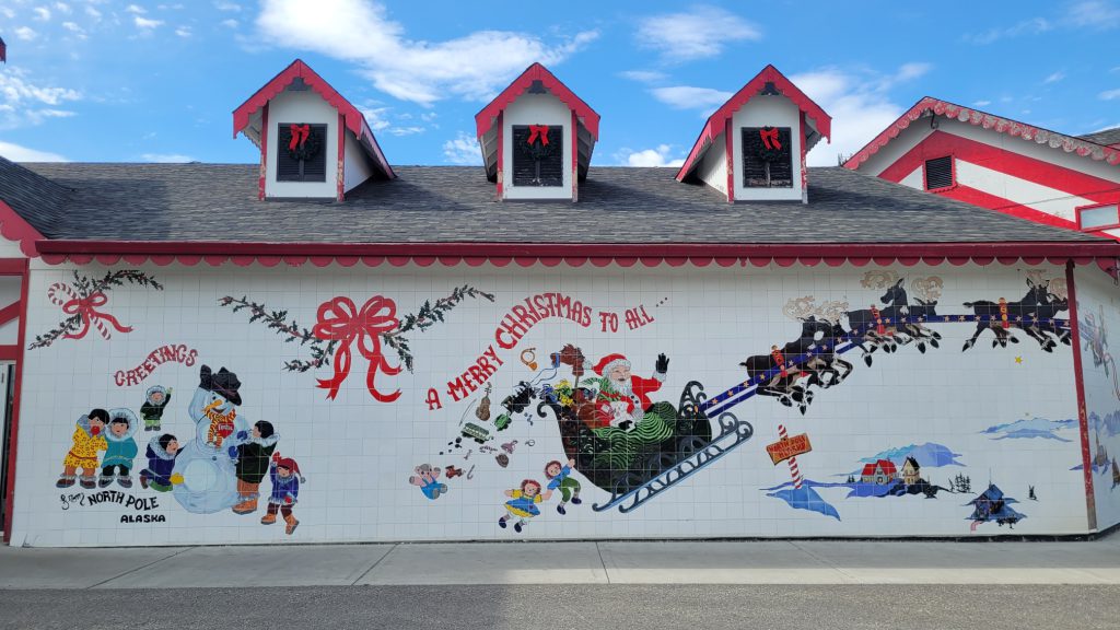 Also, nicht an DEN Nordpol, sondern in den kleinen Ort North Pole, der besonders damit vermarktet wird, dass hier das Haus vom Weihnachtsmann steht. Dies entpuppte sich natürlich, in typisch amerikanischer Manier, als Shopping-Mall. Hier ist das ganze Jahr über Weihnachten und es gab so ziemlich alles, was man sich an, neben, über oder unter den Weihnachtsbaum hängen kann. Hauptsache, es ist bunt oder blinkt oder macht Krach – oder alles zusammen.