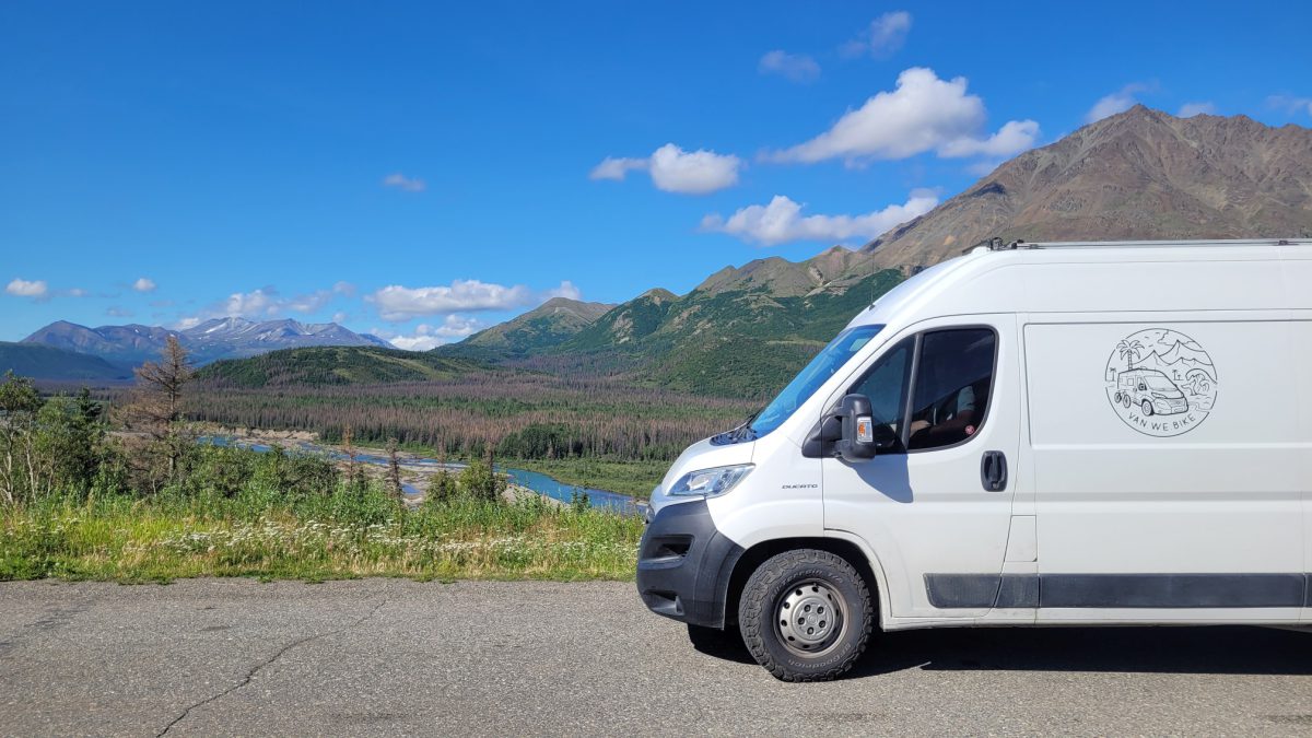 Auch für die zweite Nacht fanden wir wieder einen spektakulären Platz mit Aussicht (und Blaubeeren). Wir nutzten den Nachmittag und die einmalige Kulisse für ein bisschen Arbeiten und Sport. Irgendwann holten uns dann Wind und Regen ein und wir machten es uns drinnen mit dem Film „Into the Wild“ (siehe letzter Reisebericht) gemütlich. Tatsächlich erkannten wir einige Orte aus dem Film wieder und fanden hier erst heraus, dass er tatsächlich entlang des Denali Highways gedreht wurde, da der Originalschauplatz der Geschichte (auf dem Stampede Trail, hinter Healy) zu schwer zugänglich war für das Filmteam.