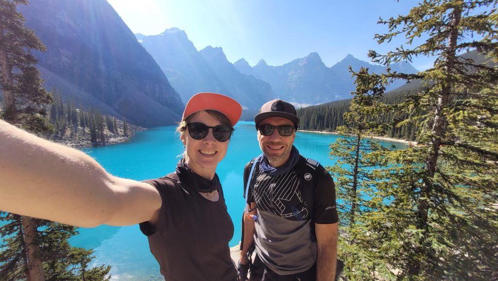 Der Lake Agnes ist ein beliebtes Wanderziel für sich, denn hier steht ein sogenanntes Teehaus, wo es nicht nur Tee, sondern auch andere Getränke und kleine Speisen gibt – in traumhafter Kulisse. Wir bestaunten aber erstmal nur die Kulisse. Das Teehaus, wo die Leute selbst früh am Morgen schon Schlange standen, hoben wir uns für später auf.